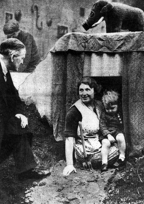 Their bases were buried three feet in the ground and the tops covered with earth. These shelters gave good protection, except in the case of a direct hit. This photograph appeared on the front page of the Daily Sketch on 2 March 1939.