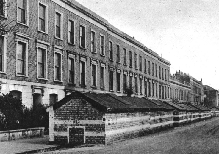 This photograph shows new communal shelters constructed in an Islington street in 1944.