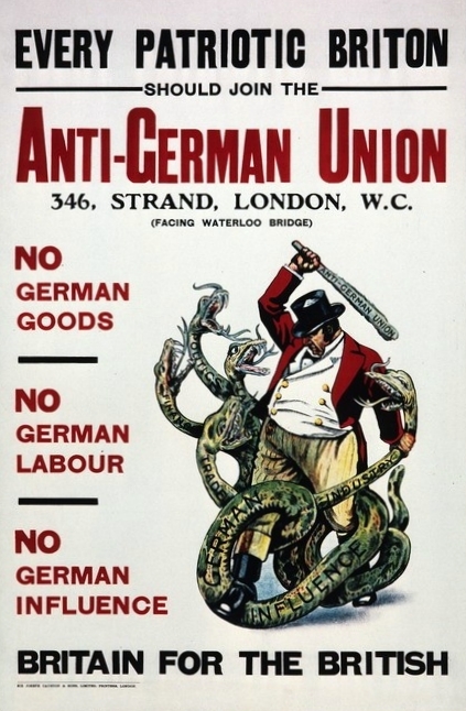 Nationalism and anti-immigration sentiments grew with the outbreak of World War One. This was fuelled by the sinking of the passenger ship Lusitania on 7 May 1915. Anti-German protests and riots erupted across Britain, with anger and violence were directed towards German and Austrian residents. German owned businesses and shops were attacked. The government responded on 12 May forcing the internment of ‘enemy aliens’ under the Aliens Restriction Act (1914). By November 1915, over 32,000 people had been interned, though those who had become naturalised citizens were exempted. Following the end of World War One, this legislation was not repealed, rather a new piece of legislation was enacted, the 1919 Aliens Restriction Act which extended the powers of the wartime Aliens Restriction Act into peacetime; obliging foreign nationals to register with the police, enabling their deportation and restricting where they could live.