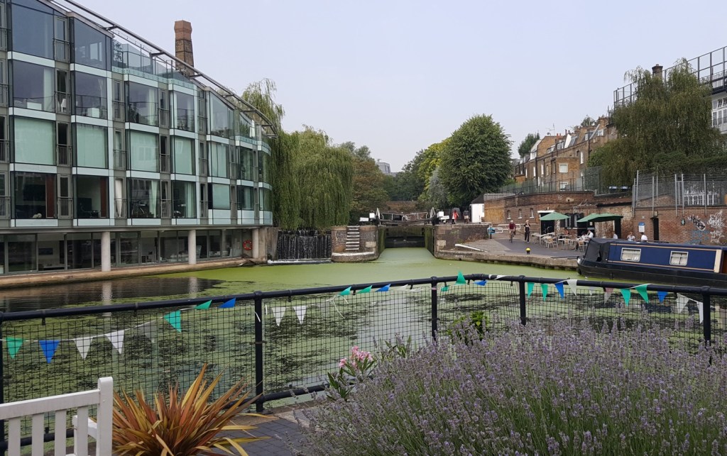 Locks allow canals to run flat when the landscape undulates. Lock keepers worked twelve hour shifts when both lock chambers were in constant use. City Road Lock had a forge and stables for a change of horse between the large inland port at Paddington and Limehouse. The lock keeper’s cottage on the opposite bank was replaced in the 1950’s by three houses for British Waterways’ workers next to Anderson’s Timber Merchants.