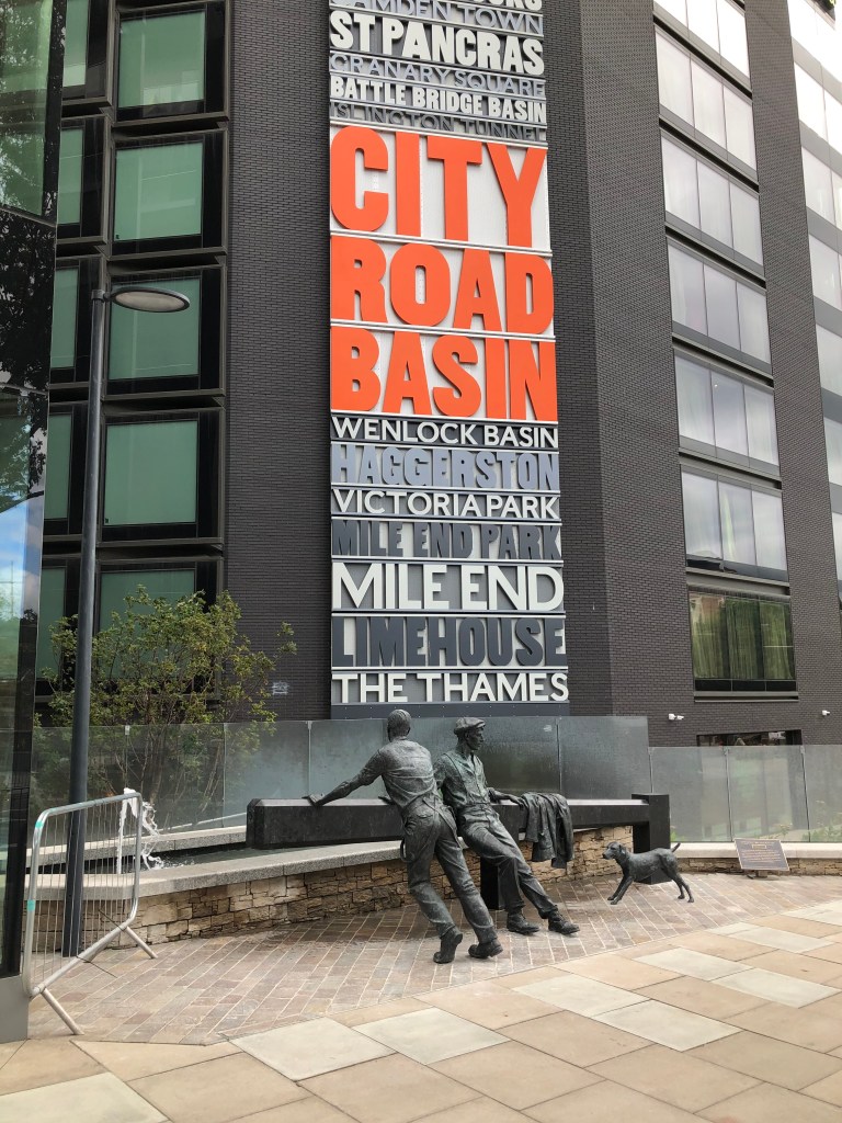 In 2020 Opening the Lock Gate (right) was unveiled at City Road Basin to celebrate the bicentenary of the Basin. Sculpted by Ian Rank-Broadley and commissioned by the Berkeley Group property developers, Opening the Lock Gate commemorates ‘the working people of Britain’s canals.’ The plaque at the bottom right of the sculpture reads ‘this sculpture celebrates the toil of the men and women who worked tirelessly on the barges that arrived from across the country.’
