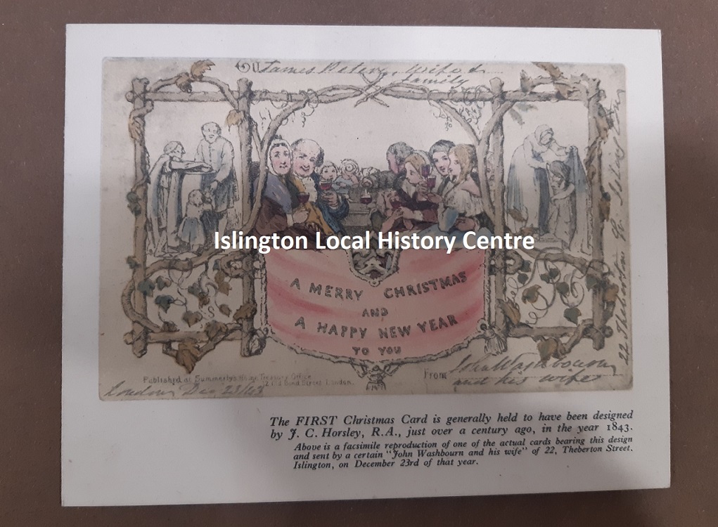 Christmas cards are a great way to send a little Christmas cheer. Did you know that Islington has a connection to what is thought to be the first Christmas card? In 1843 John Calcott Horsley, at the behest of Henry Cole, designed the first Christmas card which featured a family at the centre raising a toast. One of these cards was sent by a “John Washbourn and his wife” of 22, Theberton Street, Islington.
